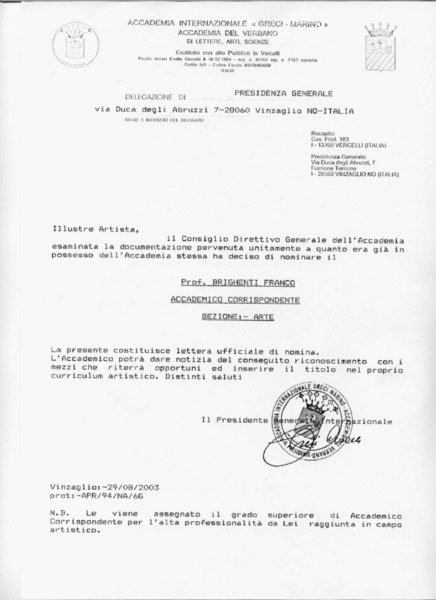 Novembre 27: gold medal given by the Alba gallery of Ferrara