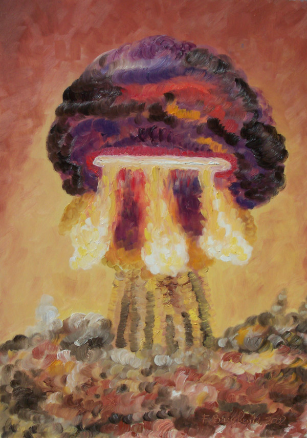 "Esplosione nucleare" (Nuclear explosion) oil on board 50 x 70 cm